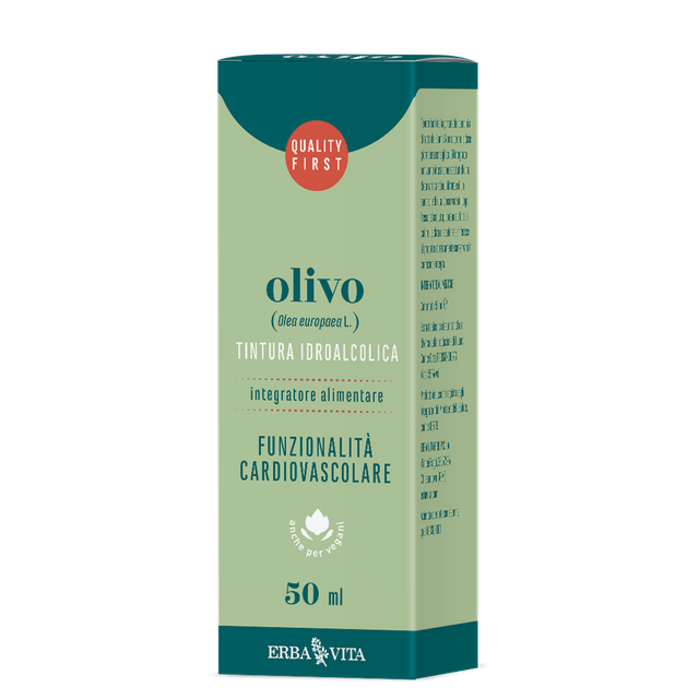 Tintura idroalcolica di Olivo. L’Olivo è indicato per favorire la funzionalità cardiovascolare e la regolarità della pressione arteriosa; coadiuva, inoltre, il metabolismo dei carboidrati e dei lipidi.